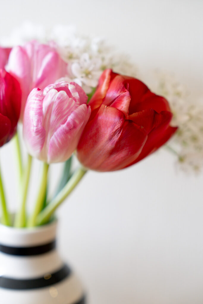 弾む気持ちにぴったりなチューリップのお花には、赤のチューリップは「愛の告白」、ピンクは「愛の芽生え」「誠実な愛」。そしてチューリップ全体では「博愛」「思いやり」などの愛に満ちた花言葉。